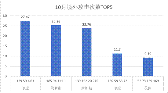 根据网络防护日志统计,10月份境外非正常访问学校信息系统的国家地区,具体统计如下:
