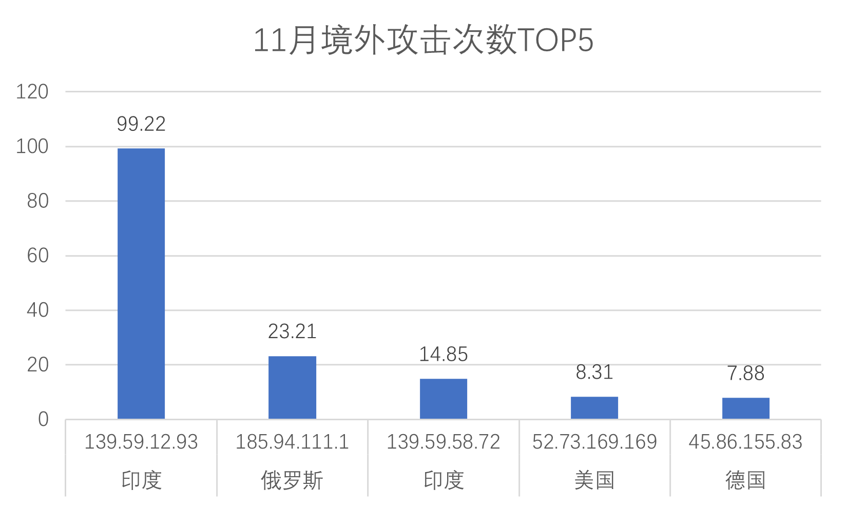 根据网络防护日志统计,11月份从境外恶意访问学校信息系统的国家地区,具体统计如下: